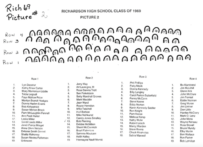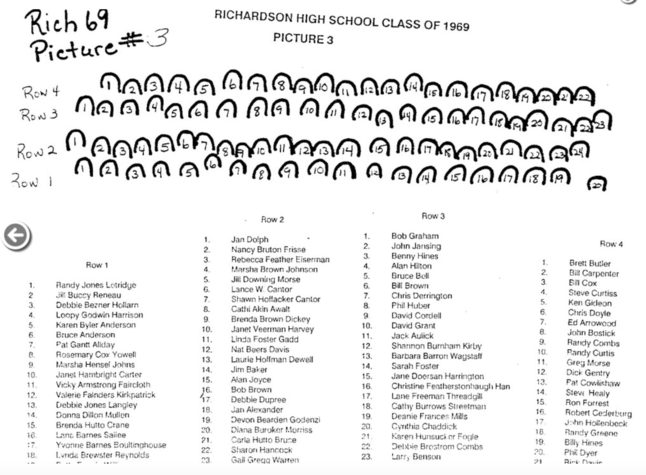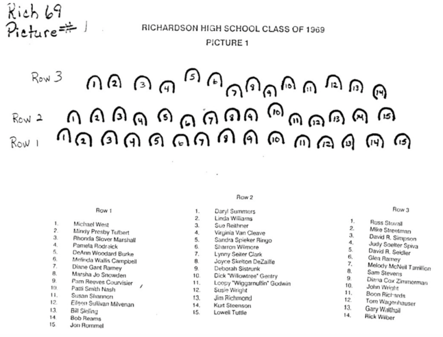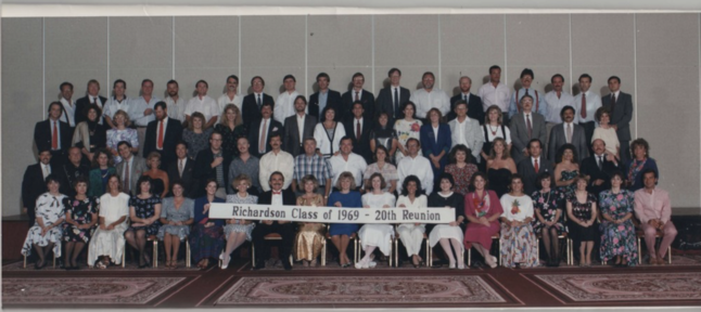 We have three photos from the 20th Reunion. Each photo is accompanied by a graphic showing the names of those in the photo. The first photo below is the 1st group followed by the graphic with their names. The other two photos with their respective graphics follow.