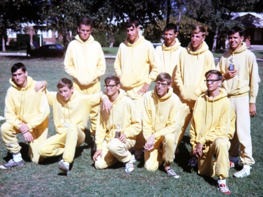 Above: RHS Cross Country 1965-66. Ninth grade at "Belt Line" was included in the high school. Ron Forrest is in the middle of the bottom row. Classmate Randy Rushing is on the far right of the bottom row and classmate John Powell is in the middle of the top row. I don't recognize the others, and they are probably upperclassmen.